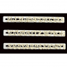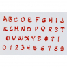 Zestaw pozwala na wycięcie 26 różnych liter oraz cyfr. Znaki umieszczone są na plastikowych linijkach.
