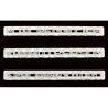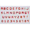 Zestaw pozwala na wycięcie 26 różnych liter oraz cyfr. Znaki umieszczone są na plastikowych linijkach.