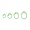 Podstawowy zestaw 4 plastikowych wykrawaczek do masy cukrowej w kształcie listków róży. Idealne do dekorowania tortów w stylu angielskim, ozdabiania babeczek masą cukrową.