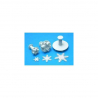 Bardzo starannie wykonane stempelki wykrawaczki z tłoczkiem w kształcie płatka śniegu. Doskonałe do przygotowania ozdób z masy cukrowej. Pięknie prezentują się na tortach i babeczkach z kremem.