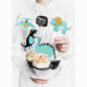 Kolorowe toppery na tort tematyczny, DINOZAURY, mix wzorów, 5 sztuk w opakowaniu. Wykonane z ozdobnej, kolorowej tekturki. Dopuszczone do kontaktu z żywnością są drewniane patyczki.