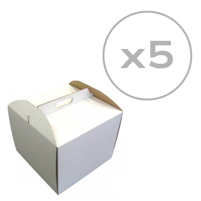 Pudełko na tort z rączką o wym. 26 x 26 x 25 cm. Biały karton.