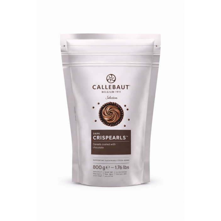 Chrupiące perełki Crispearls z ciemnej czekolady – niewielkie, ale o intensywnym smaku. Te małe perełki w wyśmienitej ciemnej czekoladzie 811 mają intensywny czekoladowy smak z wyraźną nutą prażonych ziaren kakao i wnętrze z kruchego, opiekanego herbatnika.