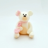 Dekoracja cukrowa miś z króliczkiem i różową kokardką biały
