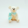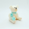 Dekoracja cukrowa miś z króliczkiem i niebieską kokardką biały