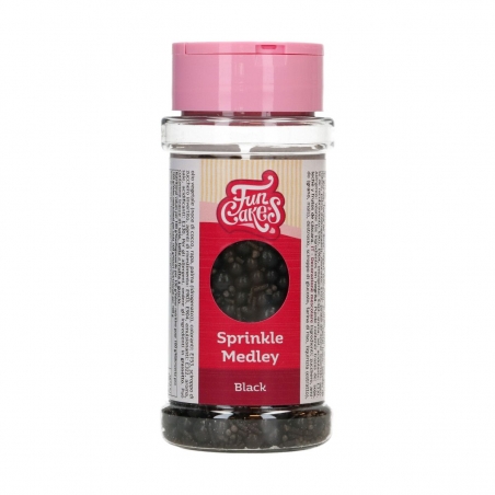 Posypka mix w kolorze czarnym to mieszanka czarnych perełek i pałeczek o różnej wielkości. Będzie idealnym wykończeniem tortów, ciasteczek, muffinów czy cake popsów.