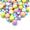 Czekoladowe kule Bubble Gum w trzech rozmiarach o średnicach ok. 15, 10 i 5 mm w cudownych pastelowych kolorach, matowe, z chrupiącym środkiem. Wspaniała ozdoba tortów, ciast, muffinów, cakesicles i innych deserów. Uniwersalna dekoracja słodkości urodzinowych, czy słodkich stołów.