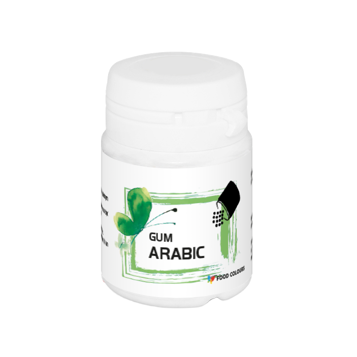 Guma arabska marki Foodcolours to produkt pochodzenia roślinnego w postaci proszku, do zastosowania w masach cukrowych. Stabilizuje masę zapewniając odpowiednią jej konsystencję. Może być również stosowana jako naturalny klej do łączenia elementów dekoracyjnych.