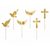 Zestaw złotych pikerów – mini toppery na I Komunię Świętą (6 szt.)