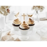 Wprowadź do komunijnego stołu wyjątkowy blask i symboliczny charakter dzięki zestawowi eleganckich złotych pikerów, idealnych do dekoracji tortów, babeczek, muffinek czy innych deserów. Każdy zestaw zawiera 6 dekoracji w trzech klasycznych, religijnych kształtach: gołębicy, krzyża oraz skrzydeł anioła – po 2 sztuki każdego wzoru.