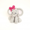 Wspaniała dekoracja na tort estetycznie wykonana z masy cukrowej, przedstawiająca sympatycznego szarego słonika z różową kokardką. Dekoracja będzie wspaniałą ozdobą tortów okolicznościowych dla dzieci.