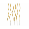 Zestaw 6 długich, cieniutkich świeczek w kolorze złotym, o ciekawym, lekko zakręconym kształcie.
