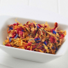 Suszone kwiaty jadalne: mix płatków róży, nagietka, chabra niebieskiego i różowego. To efektowna ozdoba tortów, babeczek i ciastek.