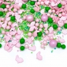 Cudowna wielkanocna posypka marki Happy Sprinkles. Uświetni Twoje wypieki, natychmiast po zaaplikowaniu doda im uroku, koloru i wdzięku. Wspaniała ozdoba na słodkie stoły, torty, ciasta, ciasteczka, muffiny, babeczki, cakesicles i inne desery. W posypce znajdziesz słodkie dekoracje w kształcie różowych króliczków, czekoladowych różowych i zielonych perełek, maczkiem w kolorach różowym, jasnozielonym, białym, zielonym oraz z drobnymi pałeczkami w kolorze zielonym.