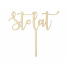 Topper drewniany na tort w kształcie napisu: Sto lat. Wspaniała ozdoba tortu urodzinowego. Można wykorzystać go jako dekoracja tortu lub jako część stroika. Topper wykonany jest ze sztywnego drewna w naturalnym, jasnobrązowym kolorze. Dzięki jego strukturze z łatwością nadasz topperowi inny kolor - wystarczy pomalować go jadalną farbką lub dodać mu połysku przy użyciu brokatu w pyłku.