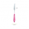 Szpatuła kątowa, zwężana, do pracy z kremem, szczególnie do tworzenia na tortach wzorów z kremu. Ostrze szpatuły wykonane ze stali nierdzewnej. Rączka w kolorze różowym, wykonana z wysokiej jakości plastiku