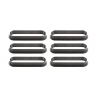 Zestaw sześciu małych perforowanych rantów cukierniczych do wypieku tart w stylu nowoczesnym. Ranty są wykonane z materiału termoplastycznego, odpornego na zgniatanie. Charakteryzują się wysoką stabilnością termiczną, brzeg jest perforowany co zwiększa cyrkulację powietrza - ciasta są idealnie wypieczone, kruche.