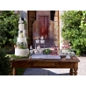 Torty z przezroczystym piętrem wypełnionym własnoręcznymi dekoracjami i aranżacjami kwiatowymi sprawia wrażenie wyższego, smuklejszego. Dodaje całości elegancji i stylu.