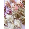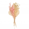 Gotowy bukiet z suszków tworzący gotowy do użycia topper. W skład bukietu wchodzi: liść palmowy, phalaris, len oraz owies. Całość utrzymana jest w delikatnych kremowych kolorach z domieszką przygaszonego różu.
