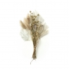 Bukiet z suszków tworzący gotowy do użycia topper. W skład bukietu wchodzi: liść palmowy, lagurus, len oraz pszenica. Całość utrzymana jest w delikatnych naturalnych kolorach.