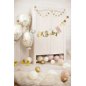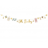 Piękna girlanda tworząca napis "Oh Baby". Oryginalna ozdoba imprezy urodzinowej, Chrztu Świętego, Baby shower! Uświetnij wygląd swojego przyjęcia zawieszając girlandę w pomieszczeniu. W środku opakowania znajduje się złoty sznurek do zawieszenia girlandy. Zestaw do samodzielnego złożenia.