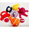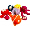 Wymiary: rybki 6 x 4 x h 3,5 cm, ośmiornica śr. ok. 8 cm h 4,5 cm, krab śr. ok.5 cm h 4,5 cm, duże muszle śr. ok. 4 cm h 4 cm, małe muszelki śr. ok. 2cm h 2 cm.