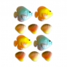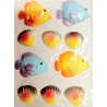 W zestawie znajdują się 4 kolorowe rybki i 6 cieniowanych muszelek.
