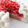Kształt formy z centralnym wgłębieniem, pozwala na udekorowanie deseru świeżmi owocami np. malinami jak zaproponował Cedric Grolet.
