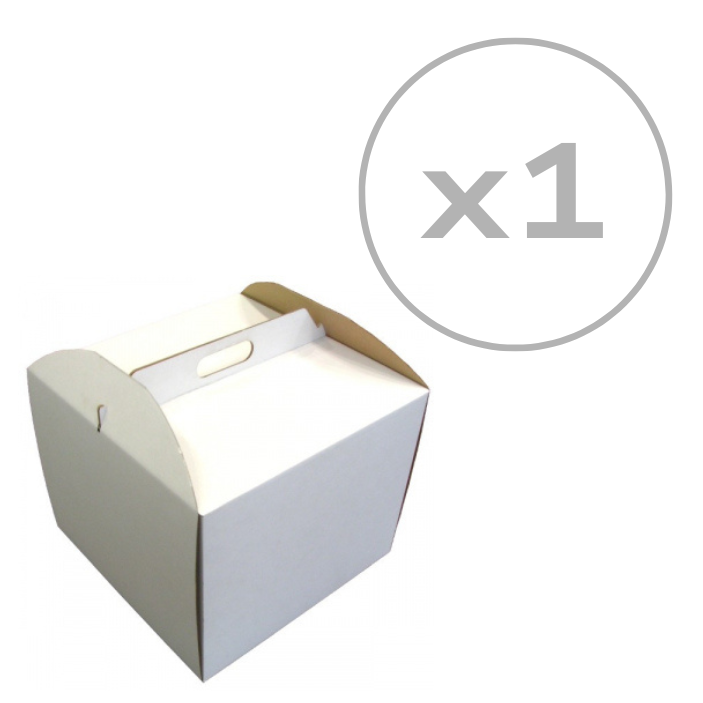 Pudełko na tort z rączką o wym. 28 x 28 x 25 cm. Biały karton.