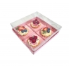 Podaruj swoim bliskim słodki prezent zapakowany w eleganckie pudełko. Przezroczyste wieczko pozwala na wyeksponowanie zawartości dodając całości wdzięku i klasy. Idealnie nadaje się na 4 monoporcje i muffiny. Odpowiednie na minibezy.