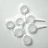 Małe pipety, wykonane z miękkiego plastiku, posiadają podłużną, spłaszczoną końcówkę do napełnienia płynami.