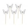 Toppery pikery srebrne motyle, 12 szt.