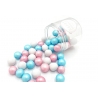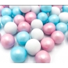 Czekoladowe kulki Maybe Baby w dwóch rozmiarach o średnicach ok. 15 mm, w pastelowych kolorach: białym, różowym i niebieskim, z delikatnym połyskiem i chrupiącym środkiem. Wspaniała ozdoba tortów, ciast, muffinów, cakesicles i innych deserów. Idealna dekoracja słodkości na baby shower, chrzciny, roczek czy dekorowanie słodkich stołów.