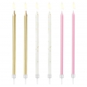 Świeczki długie cienkie biało różowo złote, 6 szt.