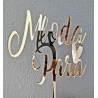 Wyjątkowy topper na tort, wykonany z plexi z efektem złotego lustra, w formie napisu "Młoda Para" z serduszkiem. Wspaniale sprawdzi się, jako samodzielna ozdoba lub część większej aranżacji, kompozycji.