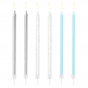 Świeczki długie cienkie biało niebiesko srebrne, 6 szt.