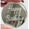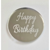 Dekor na tort Happy Birthday, srebrne lustro plexi, 1 szt.