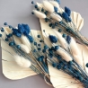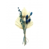Gotowy bukiet z suszków tworzący gotowy do użycia topper. W skład bukietu wchodzi: liść palmowy strzałka, lagurus, phalaris, len. Całość utrzymana jest w tonacjach zimowych.