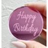 Dekor na tort Happy Birthday, różowe lustro plexi, 1 szt.
