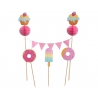 Oryginalny, wielokolorowy topper - girlanda "Słodkie ciasteczka", posiada cztery części. Świetnie nada się na tort z okazji urodzin oraz słodkości z okazji tłustego czwartku. Dekoracja ze względu na swoje kolory sprawi, że tort będzie się wyróżniał oraz przykuje uwagę gości.