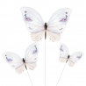 Toppery na tort lub babeczki w kształcie motyli. Świetnie sprawdzą się, jako dekoracja słodkości z okazji przyjęcia urodzinowego. W zestawie znajdują się taśmy samoprzylepne oraz elastyczne druty do wbijania topperów w tort, dzięki czemu samemu można stworzyć dekorację.