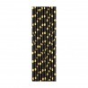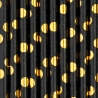 Słomki czarne w złote kropki papierowe, 10 szt.