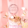 Topper na tort: różowy, lustrzany, z napisem Happy Birthday. Doskonała dekoracja tortu, słodkości z okazji urodzin.