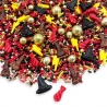 Posypka World Of Magic, to mix pałeczek, żółtych błyskawic, czerwonych krawatów i czarnych kapeluszy. Wspaniała ozdoba tortów, ciast, muffinów, cakesicles i innych deserów. Idealna dekoracja słodkości na urodziny fana magii.