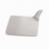 Białe, kwadratowe, eleganckie podkładki firmy Pavoni z uchwytem, o wymiarach 8 x 8 cm, idealne do prezentacji monoporcji.