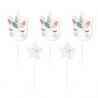 Zestaw pięciu świeczek na tort z motywem jednorożca! W zestawie znajdują się: . Świeczki zamocowane są na patyczkach zapewniając im stabilność po wbiciu w tort. Wspaniała dekoracja, będą pięknie prezentować się na torcie, muffinkach lub innych wypiekach.