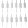 Małe, zwężane pipety, wykonane z miękkiego plastiku, posiadają podłużną, spłaszczoną końcówkę do napełnienia płynami.