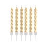 Efektowna dekoracja urodzinowa na tort. Świeczki w kolorze złotym z białymi podstawkami.