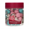 Cudowna mieszanka dużych czekoladowych kul (ø15 mm) w kolorze metalicznym złotym, matowym jasnoróżowym oraz matowym niebieskim. Kulki mają pyszny, chrupiący środek! Idealna dekoracja na słodkości.