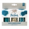 Zestaw posypek, perełki oraz pałeczki, Niebieskie i srebrne metaliczne, Decora